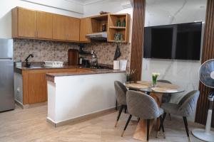Guests benefit from elevator access to the apartment designed to accommodate families. Complimentary items like chocolates or cookies and bottled water are provided in-room. Meals can be delivered directly from nearby restaurants if desired. Cleaning services are managed by third parties.