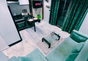 The one-bedroom apartment includes a fully equipped kitchen with an oven, stovetop, and refrigerator enabling guests to prepare their own meals. The living area features a sofa bed and flat-screen TV for relaxation. Laundry needs are met with a washing machine and tumble dryer available within the unit. Guests can enjoy complimentary Wi-Fi throughout the property.