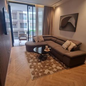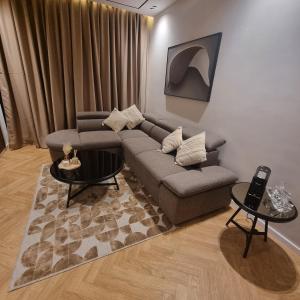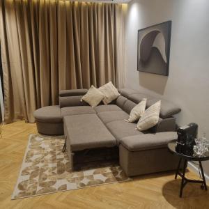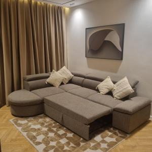 Appartement de haut standing tout juste aménagé is a newly furnished air-conditioned apartment in Casablanca, featuring a private balcony and entrance that ensure privacy and comfort.