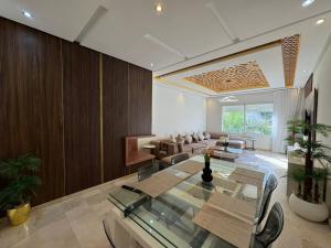 Appartement Luxueux Casa Nearshore is a spacious three-bedroom apartment located in Casablanca, just 12 km from Anfa Place Living Resort. Its main appeal lies in combining garden views with leisure amenities such as a sun terrace, barbecue facilities, and full-day security.