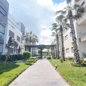 Appartement Tamaris avec piscine et plage privée is a ground-floor apartment in Casablanca offering direct access to a private pool and located just 100 metres from El Mreissah Beach. This soundproof accommodation combines proximity to the coast with free private parking for guests who drive.