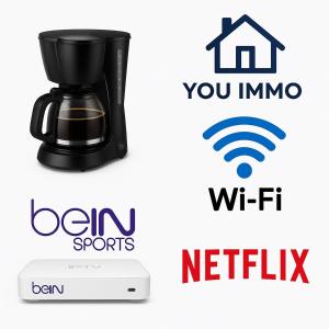 Cookies and juice were provided upon arrival. The apartment is clean, spacious, and equipped with a fully functional kitchen and laundry machine. Strong WiFi is available along with Netflix and YouTube on TV. Parking is right outside near the front entrance with a night guard present. The owner offered homemade couscous for lunch as extended hospitality.