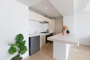 The air-conditioned unit includes one bedroom, two bathrooms with showers and toiletries, and soundproof walls. Guests can enjoy city views from the terrace or dine outdoors on the terrace's dining table. The living room offers a convertible sofa bed alongside a flat-screen TV with streaming services. A fully equipped kitchen contains a stovetop, refrigerator, dishwasher, oven, coffee machine, and kitchenware to support self-catering needs.
