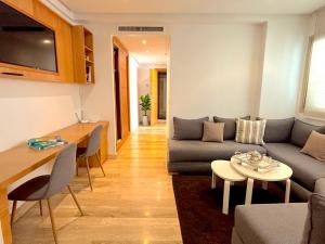 Inside, the apartment includes a fully equipped kitchen with a stovetop, dishwasher, oven, refrigerator, and kitchenware. The living space features a seating area with a flat-screen TV alongside free in-room Wi-Fi. There are two bathrooms fitted with showers and hairdryers. Additional conveniences include towels and bed linen provided, an ironing facility, clothes drying rack, dressing room space, non-feather pillows along with synthetic-fill options.