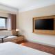 The hotel features a variety of air-conditioned rooms including double rooms, twin rooms, and suites. Each room offers soundproof walls for quiet comfort along with free toiletries and bathrobes. Guests have private bathrooms equipped with showers or walk-in showers, bidets, and hairdryers. Rooms include flat-screen TVs with satellite channels and minibars as well as tea and coffee makers. Some units provide one to three beds with private entrances and city views.