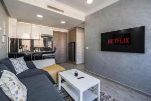 Chic Apartment Cosy Stay offers air-conditioned accommodation with a balcony in Casablanca, featuring direct access to a terrace and free private parking. Situated within reach of Hassan II Mosque, this apartment provides one bedroom and a fully equipped kitchen including an oven, stovetop, and refrigerator.