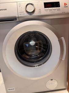 The apartment includes one bedroom, a bathroom with a shower, and an interior equipped with heating, soundproofing, and climate control. Guests can prepare meals in the fully equipped kitchen that features an oven, stovetop, microwave, refrigerator, and kitchenware. A washing machine is also available. For entertainment, the flat-screen TV offers satellite channels as well as streaming services such as Netflix.