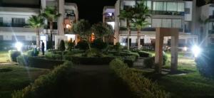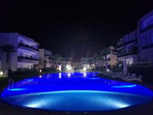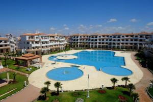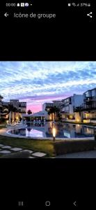 Duplex résidentiel Bord de mer is a beachfront apartment in Casablanca offering a private pool and direct access to the coastline. This residence combines two bedrooms with two living rooms and features a terrace that opens from the interior, providing guests with outdoor lounge seating including sun loungers.