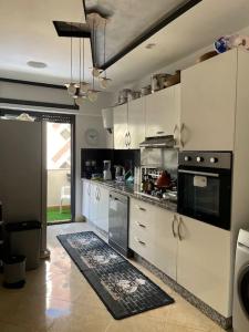 This spacious one-bedroom apartment includes a fully equipped kitchen with a refrigerator, dishwasher, oven, microwave, washing machine, tumble dryer, and iron. The living area offers a flat-screen TV for entertainment while heating is available during colder seasons.