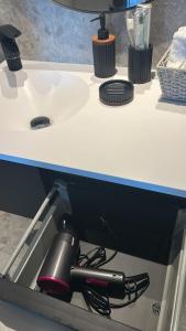 The apartment features one bedroom, two bathrooms, and a fully equipped kitchen ideal for self-catering. Entertainment is provided by a flat-screen TV, while practical conveniences include heating for colder seasons and a washing machine.