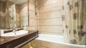The apartment includes two bedrooms with three beds, a bathroom featuring a bathtub and bidet, and a fully equipped kitchen with an oven, stovetop, refrigerator, toaster, and kitchenware. For relaxation and entertainment, guests can enjoy the seating area with a flat-screen TV that has cable channels as well as video games. Additional conveniences include heating throughout the apartment and individually controlled air conditioning in the sleeping areas.