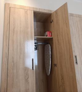 The air-conditioned apartment offers a fully equipped kitchenette with an oven, microwave, stovetop, refrigerator, and coffee station. The living area features a flat-screen TV with satellite channels and free Wi-Fi throughout. A washing machine is available for guest use, while the bathroom includes a shower and hairdryer. Bed linens and towels are provided.