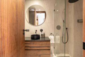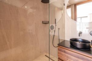 This air-conditioned apartment features a private entrance leading to a spacious living room and two separate bedrooms. It includes two bathrooms equipped with walk-in showers and hairdryers. The fully equipped kitchen contains a stovetop, refrigerator, oven, and basic kitchenware, complemented by a tea and coffee maker for convenience. Guests can enjoy the inner courtyard views from the terrace or the seating area where a flat-screen TV with streaming services is available.