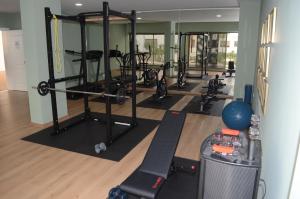 The building features an on-site fitness room and garden for relaxation. Free parking is available on the premises along with contactless check-in and check-out. Safety measures include fire extinguishers onsite and CCTV monitoring in shared areas.