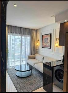 The accommodation includes one bedroom with two beds, a living room furnished with a flat-screen TV, and a kitchen equipped for cooking and food storage. A washing machine is available in the bathroom for added convenience.