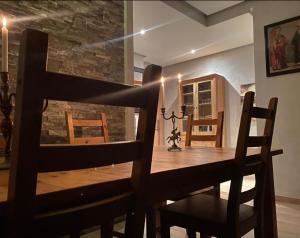 The air-conditioned apartment includes one bedroom with heating, three beds, and a flat-screen TV for entertainment. The kitchen area provides full facilities for cooking and food storage, complemented by a washing machine for added convenience. Guests can enjoy garden views from the terrace that extends from the living space.