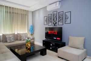 R106- Amazing & Colourful Apartment near High Speed Train Station offers air-conditioned accommodation in Casablanca with a terrace and balcony, located close to local transport options. This spacious apartment features two bedrooms, a living room, and a fully equipped kitchen.