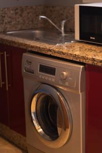 The apartment includes a fully equipped kitchen ideal for preparing meals and a bathroom stocked with towels, bed linen, soap, and a hairdryer. The living space also contains a flat-screen TV for entertainment and heating to ensure comfort throughout your stay. A washing machine and iron are available to support longer visits.