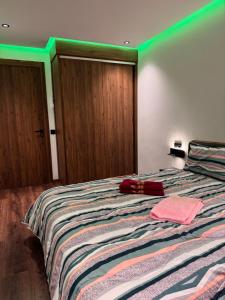 The apartment includes one separate bedroom, a living room, and a bathroom. Guests can prepare meals in the fully equipped kitchen or relax in the seating area featuring a flat-screen TV. The unit accommodates four beds and provides laundry facilities with an included washing machine.