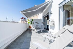 The spacious duplex comprises one bedroom, two bathrooms equipped with showers and hairdryers, a living room with hardwood flooring, and a dining area. The fully equipped kitchen includes an oven, stovetop, refrigerator, coffee machine, kitchenware, and a washing machine. Entertainment is provided by a flat-screen TV with streaming services.