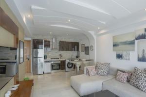 This apartment includes a living room and a separate bedroom, along with one bathroom equipped with a shower and complimentary toiletries. The kitchen contains essential appliances such as a stovetop, refrigerator, dishwasher, and oven to facilitate meal preparation. Guests can enjoy dining both indoors in the designated dining area and outdoors on the balcony that serves as an outdoor dining space. Entertainment is provided via a flat-screen TV with streaming services.