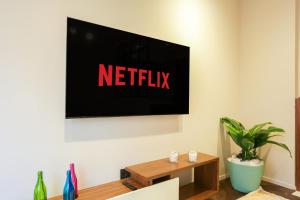 Each apartment includes a separate bedroom, a living room, and a bathroom equipped with a walk-in shower and hairdryer. The fully equipped kitchen features an oven, stovetop, refrigerator, coffee machine, kettle, and all necessary kitchenware. A dining area complements the space while entertainment is provided by a flat-screen TV with streaming services. Some units also include washing machines and terraces.