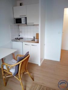 The apartment comprises one bedroom, a bathroom, and a fully equipped kitchenette suitable for preparing meals. Guests can enjoy the outdoor balcony and heating for added comfort during cooler weather.