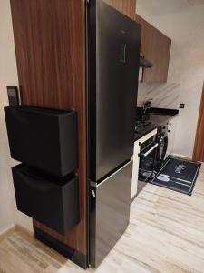 This one-bedroom apartment includes a fully equipped kitchen, a bathroom, and three beds. A flat-screen TV provides entertainment while a washing machine adds convenience to your stay.