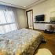 Cet appartement avec climatisation comporte 1 chambre, une télévision à écran plat, ainsi qu’une cuisine.