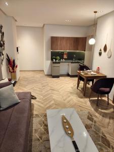 This air-conditioned apartment features one bedroom with two beds, a living area with seating, and a dining space. Guests can prepare meals in the fully equipped kitchenette that includes an oven, stovetop, refrigerator, and kitchenware. Entertainment is provided by a flat-screen TV with satellite channels.