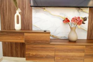 The apartment ensures comfort with central heating, hypoallergenic pillows, hardwood or parquet flooring combined with tiled or marble surfaces inside the room. Accessibility is addressed through wheelchair-friendly entrances and lift access for all guests. Additional amenities include free Wi-Fi throughout the property including public areas, housekeeping can be paused on request, electronic key card entry secures each room, concierge service assists guests, slippers are provided for convenience, there is a retail shop on site along with a hair salon.