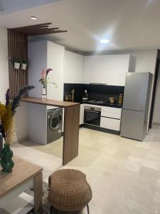 The apartment includes a private bathroom and accommodates one bed. Guests can prepare meals in the kitchen area that features a kitchenette layout, while entertainment is provided by a flat-screen TV. A washing machine is also available for guest convenience.