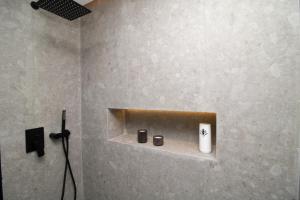 The apartment includes one bedroom and provides air conditioning throughout. Guests can prepare meals in the fully equipped kitchen that contains an oven, stovetop, toaster, fridge, and kitchenware. The living area offers a flat-screen TV with streaming services alongside free Wi-Fi access. A washing machine is available for laundry needs. The bathroom contains a walk-in shower and toiletries including shampoo and a hairdryer. Additional facilities include an extra toilet within the unit.
