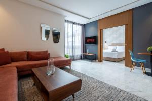 Studio Raffiné en Centre Ville is a one-bedroom apartment located in Casablanca, offering air conditioning and free Wi-Fi with convenient access via an elevator. Positioned within 7.1 km of Morocco Mall and close to Hassan II Mosque, it provides private entry for guests.