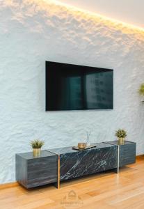 The accommodation provides additional conveniences such as free Wi-Fi throughout the premises and free private parking with an electric vehicle charging station on site. A terrace extends from the apartment offering garden and city views. Bathroom facilities include a shower and an extra toilet, soap is supplied along with other amenities like bathrobes and towels. The unit also supports guests who are hard of hearing.