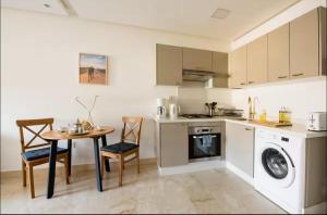 Inside, the air-conditioned apartment features one bedroom and three bathrooms alongside a living room equipped with a flat-screen TV. The kitchen is fully equipped and designed for cooking and food storage. A washing machine is available in the bathroom, while the sleeping area accommodates four beds including a crib.