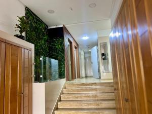 The apartment includes two bedrooms, a living room, and two bathrooms equipped with walk-in showers. Guests can prepare meals in the kitchen featuring a refrigerator, minibar, and basic kitchenware. The living area provides a flat-screen TV alongside free Wi-Fi throughout the property. Soundproof walls ensure added privacy while heating and an air purifier enhance comfort indoors.