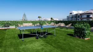 The apartment features one bedroom equipped with air conditioning and a flat-screen TV for entertainment. The bathroom includes a walk-in shower, while the living area benefits from complimentary Wi-Fi access throughout the property. Guests can also enjoy a ping-pong table on-site for leisure activities.